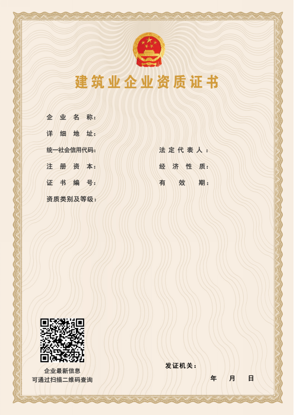 附件:新版建筑业企业资质电子证照标准样式